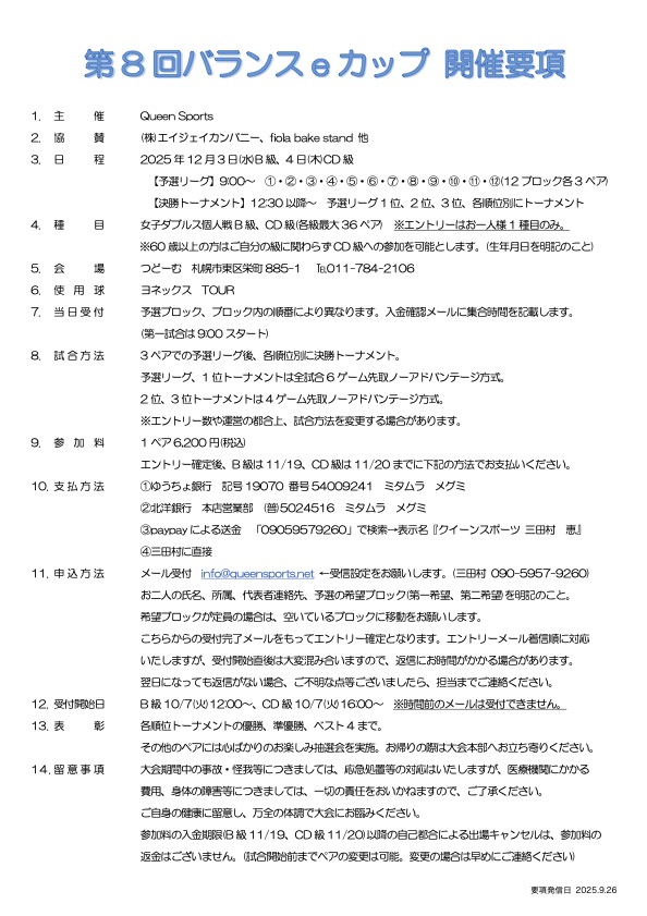 2025〜2026 第19回QS杯冬の個人戦 開催要項