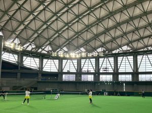 つどーむはコートの準備と撤収作業がけっこう大変で、少ないスタッフで全てやるにはとても時間がかかります。今回初めて、参加選手にもお手伝いしていただけたら嬉しいというお願いをしたところ、皆さん快く手伝ってくださり、準備も撤収も無事に時間内に収めることができました。
