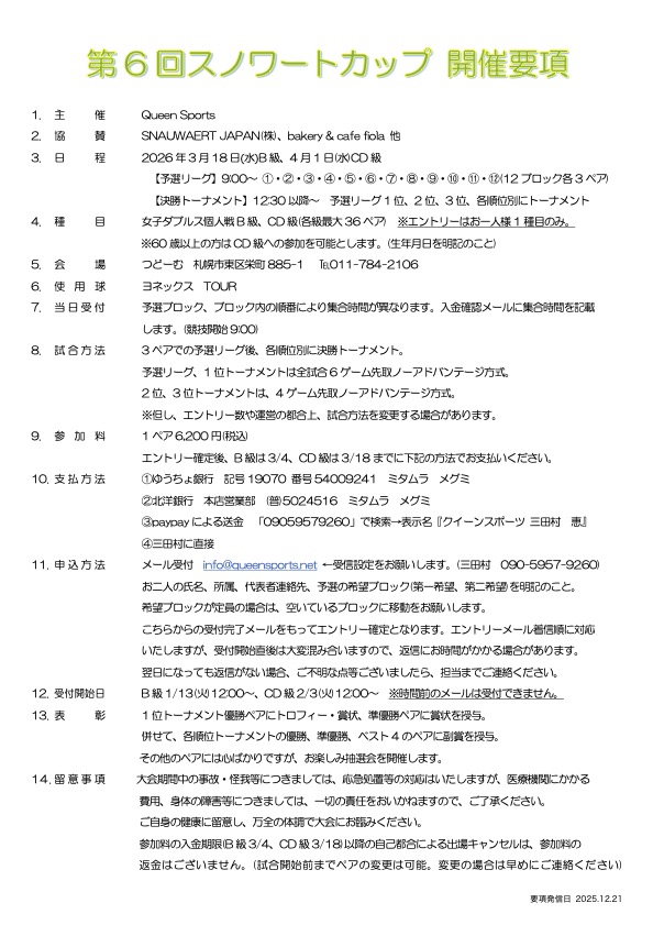2026 第6回スノワートカップ開催要項